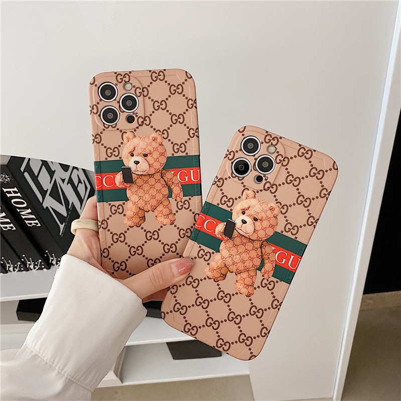 可愛い グッチ iPhone 12/12pro maxケースは人気キャラクターテディベアが付いて、とても可愛いです。ハイブランドと人気キャラクターを組み合わせスマホケースは女性の中で大人気あります。